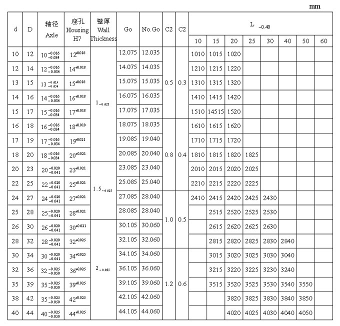 JF 雙金屬產(chǎn)品系列軸承標(biāo)準(zhǔn)尺寸