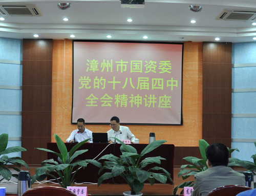 2014年12月1日下午,“漳州市政府國資委黨的十八屆四中全會精神”講座在我司舉辦,漳州市委講師團團長黃瑞土應邀宣講,來自國資委、片仔癀、漳龍、力佳、國投及我司近200人參加了講座。