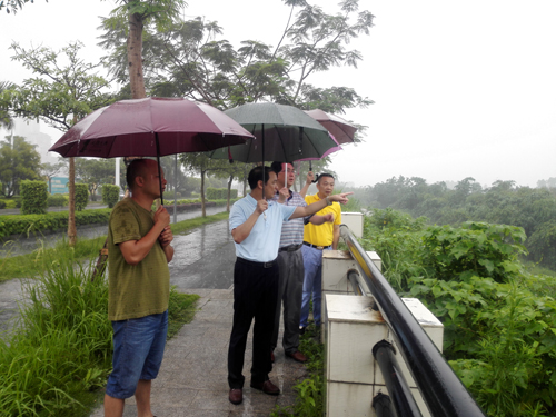 ????2017年6月3日上午,大雨如注。公司總經(jīng)理陳晉輝、副總經(jīng)理康安偉率領(lǐng)防汛抗洪搶險巡邏隊部分成員前往公司防洪防汛責任堤段——西溪康山土堤(起止樁號0+750~2+250)進行防汛安全巡查。