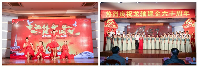 隨后,到場人員觀看建企60周年紀(jì)錄片,共同重溫龍軸走過的60年不平凡歲月;快板表演《牢記使命 同心圓夢》以朗朗上口的語言、歡快的節(jié)奏點(diǎn)燃了龍軸60華誕的喜慶氛圍;員工大合唱《不忘初心》、《唱響明天》把慶祝大會的氣氛推向高潮。