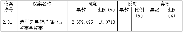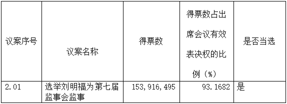 本次股東大會審議的議案二投票采用累積投票制表決,此議案的表決情況僅統計列示表決同意數。