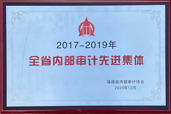 2020年12月29日,在福州市召開的全省內部審計“雙先”表彰會上,公司審計法務部首次受到表彰,榮獲“2017—2019全省內部審計先進集體”稱號,成為漳州市僅有的兩個獲此殊榮的單位之一。本次先進集體的評選,從貫徹執行《審計法》等法規、完善內部審計制度建設、完善內部審計機構和隊伍建設、創新工作方法提高審計質量、發揮審計作用提高風險防控水平、取得的業績及成效等方面進行評選。