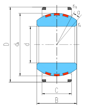 產品特點:外圈沿軸向剖分成兩半,用鎖圈固定,外圈材料為軸承鋼,淬火,磷化,球面鍍硬鉻;內圈材料為銅合金,球面鑲嵌固體自潤滑材料。