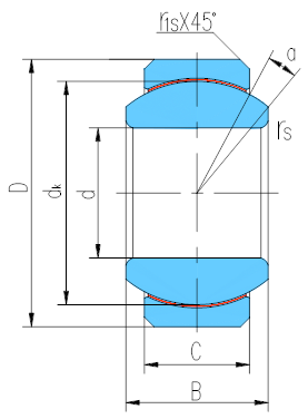 產品特點:外圈材料為碳鋼,球面粘貼PTFE編織物,擠壓成形,內圈材料為軸承鋼,淬火,球面鍍硬鉻。