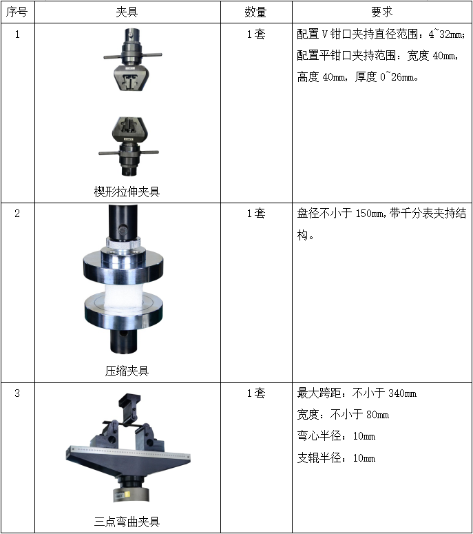 (3) 設備能夠按照標準 GB/T 228.1-2021、ASTM E8/E8M-2016a、GB/T 7314-2010、GB/T 232-2010開展拉伸試驗、壓縮試驗、彎曲試驗,且有相關內置程序,并按標準要求配齊相應的夾持工裝。