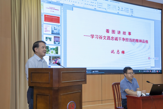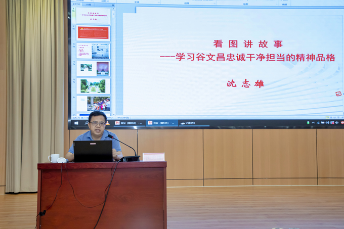 沈志雄老師圍繞“忠誠(chéng)是谷文昌精神品格最厚重的基石”“干凈是谷文昌精神品格最自然的底色”“擔(dān)當(dāng)是谷文昌精神品格最耀眼的華章”三個(gè)方面系統(tǒng)講述了谷文昌同志生平事跡,通過(guò)一幅幅珍貴的影像資料和一個(gè)個(gè)生動(dòng)的事例,大家更全面地理解谷文昌精神品格的內(nèi)涵,受到了深刻的精神洗禮。
