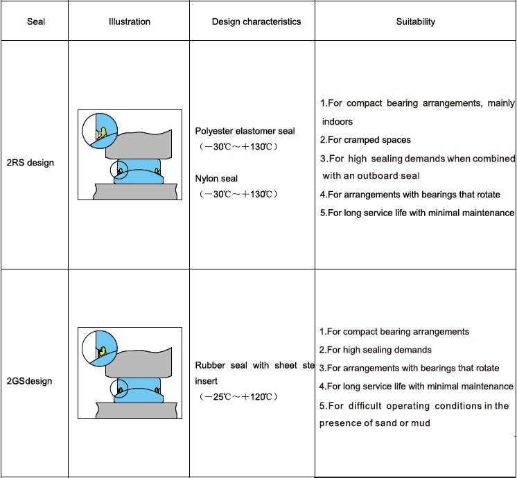 ????Most of the bearings must be equipped with seals to prevent the dirt and moisture from entering. The efficiency of the sealing has a decisive influence to the service life of the bearing. LS seal has two types, see table 12.