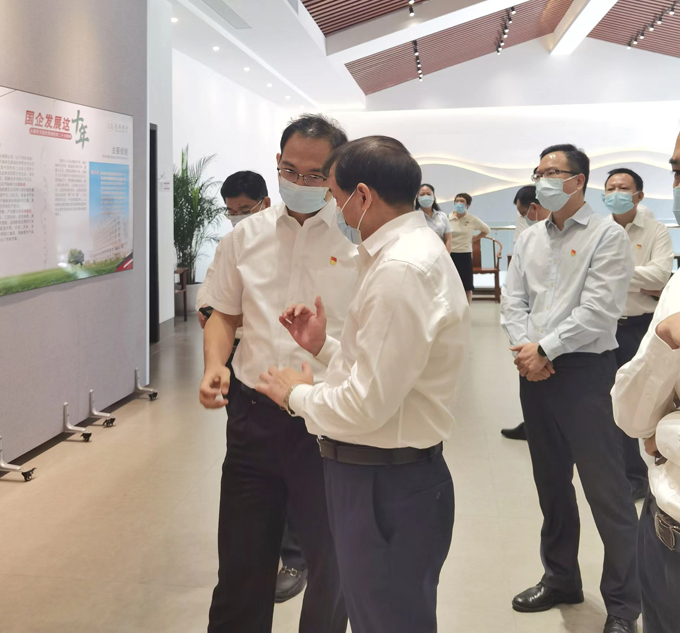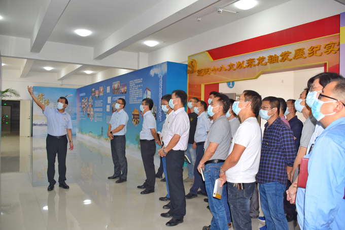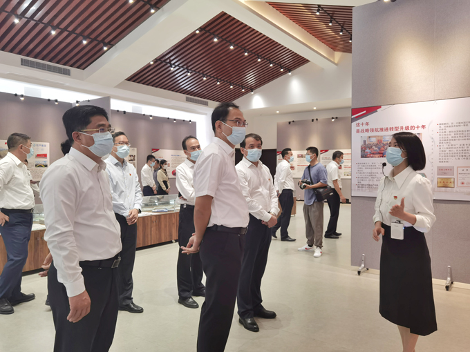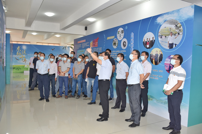 2022年10月17日,龍軸集團(tuán)黨委書記、董事長(zhǎng)陳晉輝帶領(lǐng)公司高管,在漳各黨總支、黨支部負(fù)責(zé)人觀看“龍軸這十年——初心如磐存高遠(yuǎn),循脈向前展宏圖”成就展。