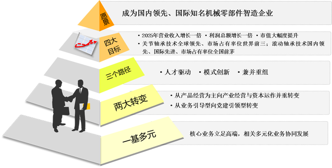 ?保持戰(zhàn)略定力,以需求牽引供給,以供給創(chuàng)造需求,精心謀劃“一基多元”為基點(diǎn)的發(fā)展戰(zhàn)略,打造國(guó)內(nèi)領(lǐng)先、國(guó)際知名的機(jī)械零部件智造企業(yè)。