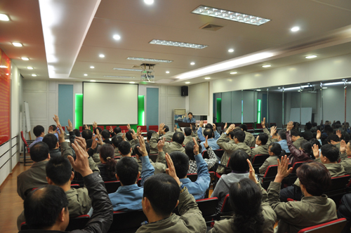 2015年4月27日至28日晚上,公司舉行2014年度中層主管述職報(bào)告及中層互評(píng)會(huì)議。公司高管及公司的92名中層主管參加了會(huì)議。此次述職報(bào)告44名中層主管代表本部門(mén)、車(chē)間作2014年—2015年上半年工作總結(jié)匯報(bào)。之后,公司高管及中層主管分別填寫(xiě)《2014年度中層主管考核評(píng)價(jià)表》,開(kāi)展中層主管評(píng)價(jià)及互評(píng)工作。