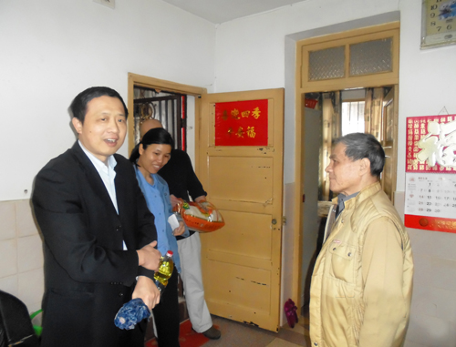 2013年4月28日,五一勞動(dòng)節(jié)前夕,市國(guó)資委開展機(jī)關(guān)干部掛鉤幫扶困難群眾活動(dòng),陳偉成等6位國(guó)資委干部在公司工會(huì)領(lǐng)導(dǎo)張?zhí)┥⒑辂惲岬鹊呐阃拢咴L慰問了我司6戶困難職工,了解他們的生活、健康情況,為他們送去米、油等生活用品。