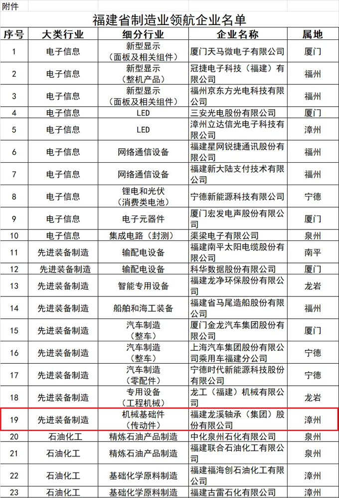 日前,福建省工信廳公布福建省制造業(yè)領航企業(yè)名單,龍軸集團光榮入選。