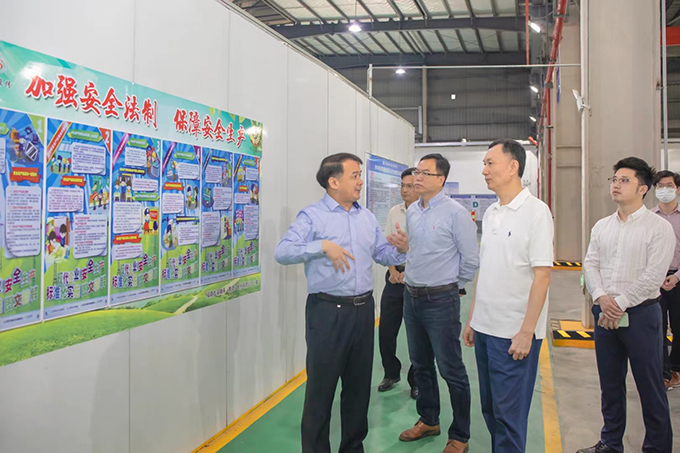之后,倪昌源一行深入藍田二廠區、藍田三廠區等各廠區及車間內部檢查疫情防控、安全生產和創城工作落實情況。
