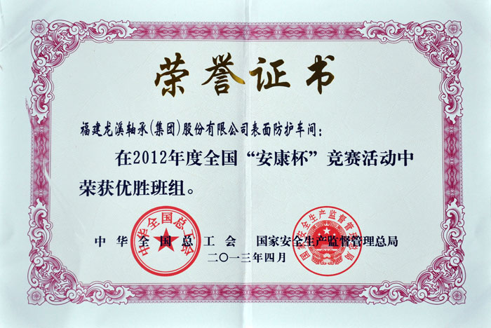 2012年度全國安康杯競賽優(yōu)勝班組(表面防護(hù))